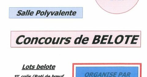 Concours de belote 2025 organisé par l’association UNC / AFN. Le 29 novembre 2025 L’UNC / AFN organise un concours de belote le samedi 29 novembre 2025 à la Salle Polyvalente. L’UNC /... Salle Polyvalente