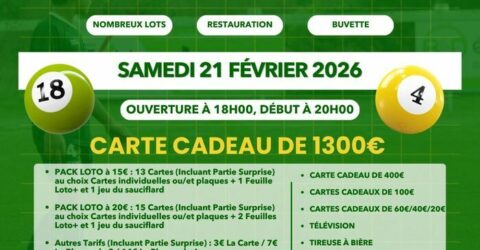 Méga loto Le 21 février 2026 Le club SMTS FOOT est heureux de vous annoncer le grand retour de son MÉGA LOTO ! Une soirée... Salle Yprésis