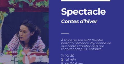 Spectacle “Contes d’hiver” Le 13 décembre 2025 par Clémence Roy À l’aide de son petit théâtre portatif Clémence Roy donne vie aux contes traditionnels qui l’habitent... Médiathèque Calliopé