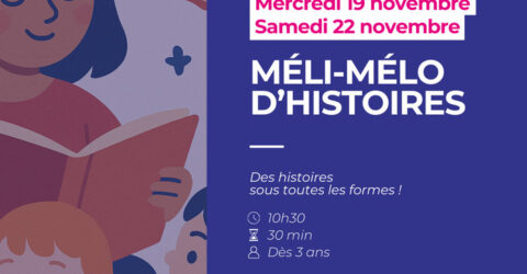 Méli-mélo d’histoires Le 19 novembre 2025 Des histoires sous toutes les formes, livre, kamishibaï, raconte tapis, tout est permis ! Des histoires sous toutes les... Médiathèque Calliopé