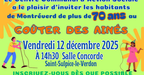 Goûter des aînés de Montréverd Le 12 décembre 2025 A destination des plus de 70 ans Goûter animé.Transport possible si besoin, pensez à le préciser lors de votre... Salle Concorde