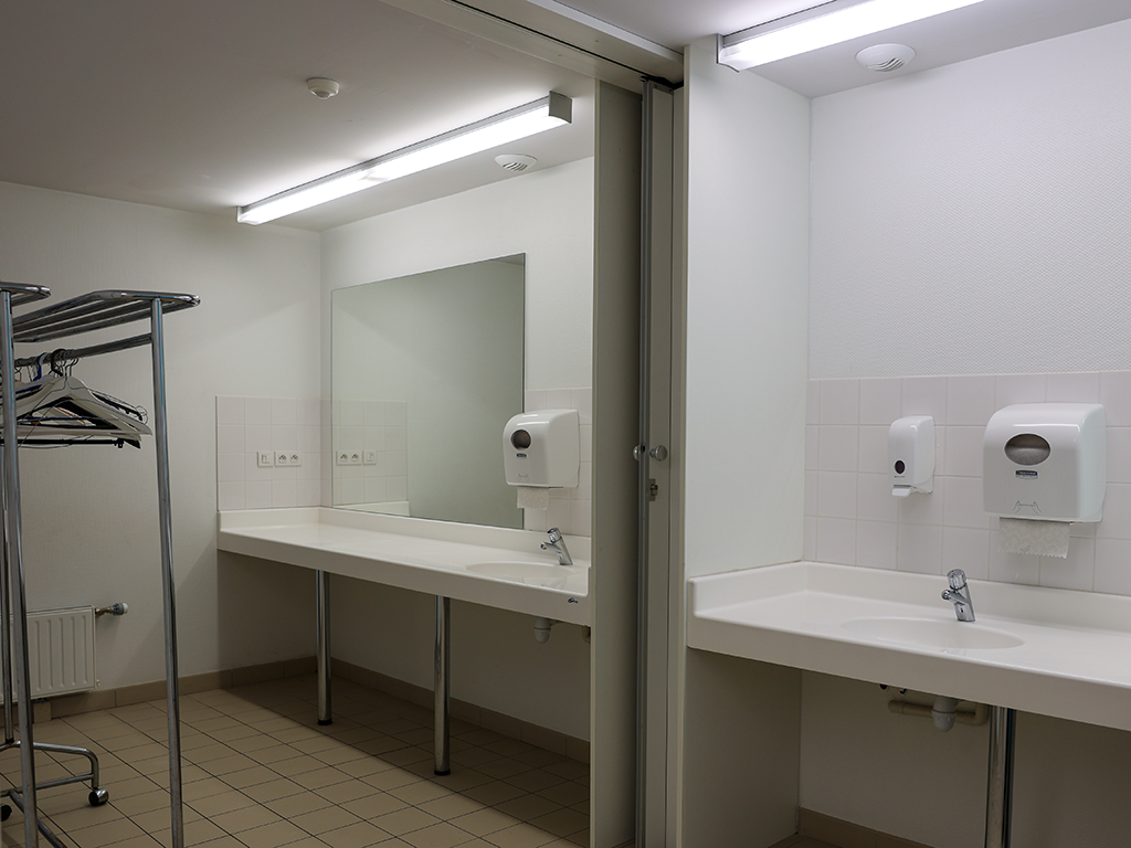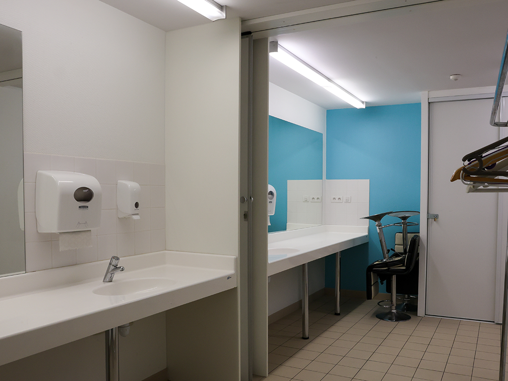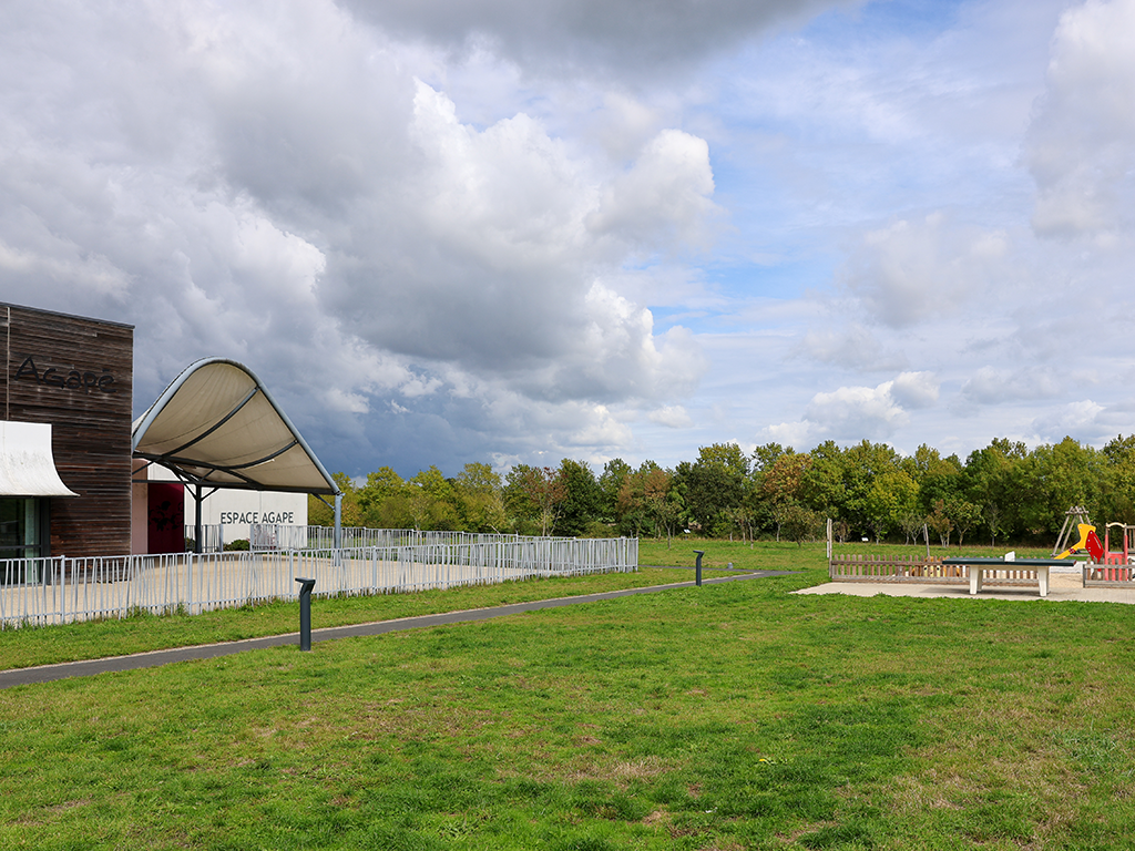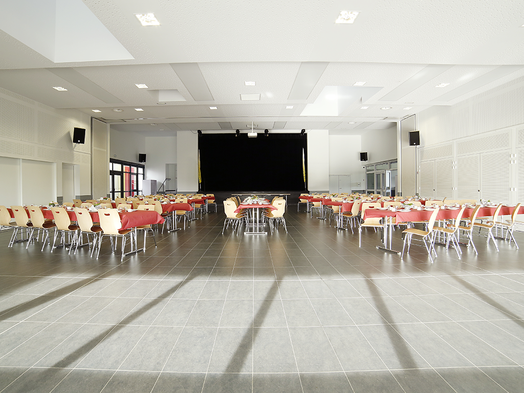 Espace Agapé – La Guyonnière L’Espace Agapé est un bâtiment pratique et modulable. Restaurant scolaire et salle polyvalente, il adapte ses dimensions en fonction des activités quotidiennes qu’il abrite, cela permet d’accueillir une large gamme de manifestations : théâtre, concerts, mariages, événements familiaux et associatifs, réunion d’entreprise… Capacité d’accueil : Debout : 400 Spectacle assis : 300 Repas assis : 260 Espaces intérieurs : Espace Hall bar Grande salle de 300 m² avec scène (10m x 5m x 5.30 haut) 2 Loges communicantes avec sanitaires et douches Espace cuisine Sanitaires Espaces extérieurs : Espace vert non clos Parking partagé avec le complexe sportif Equipements : Matériel : Vidéoprojecteur et écran 6 Enceintes (dont 2 au niveau du bar) 2 Amplis Mobilier : 50 Tables (183×76) 15 Tables (160×60) 280 Chaises Pas de Vaisselle sur place Hall/Bar 6 Portants cintres 2 Frigos de bar (125H x 75L x 40P) 1 Frigo (140H x 60L x 45P, 4 étagères) 1 Lave verres 2 Éviers Cuisine 1 Micro-onde 1 Four pro (66H x 32L x 55P, 3 grilles) 1 Piano (2 feux / plancha feu) 1 Évier 1 Lave-verres 2 Armoires frigo (135H x 60L x 70P, 3 étagères) 2 Dessertes 1 Percolateur Renseignements complémentaires : Heure d’arrêt de la musique : 2h00 Heure de fermeture : 2h30 Wi-Fi non disponible Location possible : Espaces Jauge debout Jauge assise Hall Bar 50 personnes – Hall Bar + Petite salle 80 personnes – Salle entière (Hall bar + grande salle) 400 personnes Repas : 260 personnes Spectacle : 300 personnes Localisation Rue du Stade - La Guyonnière, 85600 Montaigu-Vendée Infos utiles Service Vie associative et Gestion des salles Rue du Stade - La Guyonnière, 85600 Montaigu-Vendée 02 51 09 21 21 Nous contacter Infos pratiques Tarifs salles majeures MV 2026 Fiche technique Espace Agapé Règlement intérieur – Salles majeures