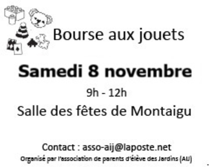 Bourse aux jouets – samedi 8 novembre 2025 de 9h à 12h – salle des fêtes de Montaigu