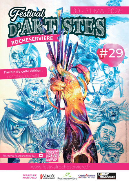 Festival d’Artistes de Rocheservière Le 30 mai 2026 29 ème édition du Festival d’Artistes de Rocheservière. Retrouvez les galeries de poche, les concours et des performances artistiques! Le festival d'Artistes de Rocheservière est un évènement familial et festif qui vous plonge dans les univers d'artistes variés (peintres, sculpteurs, street art, photographes) au gré des galeries de poche qui jalonnent la commune. Exposés dans les commerces, les salles municipales ou chez des particuliers, les artistes seront disponibles pour échanger avec vous sur leur travail.Pour animer les rues, musique et performances artistiques seront au rendez-vous. Dates Le samedi 30 mai 2026 de 14:00 à 19:00 Le dimanche 31 mai 2026 de 10:00 à 13:00 Le dimanche 31 mai 2026 de 14:00 à 18:00 Localisation Coeur historique place de la mairie rocheserviere Rocheservière