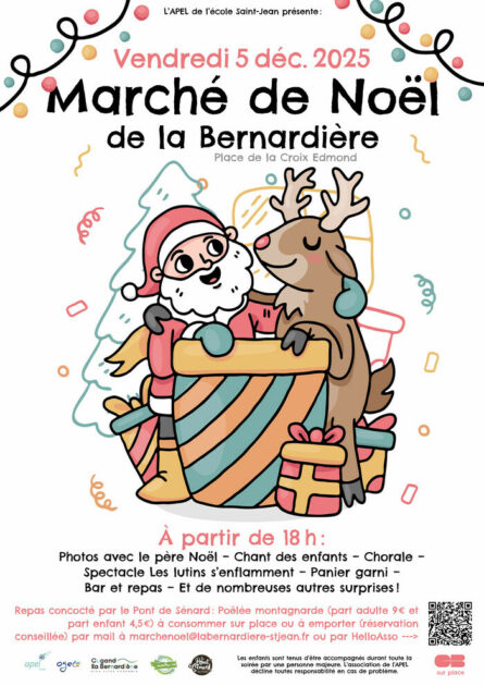 Marché de Noël proposé par l’APEL de l’école Saint Jean (la Bernardière) le vendredi 5 décembre à partir de 18h à la place de la Croix Edmond