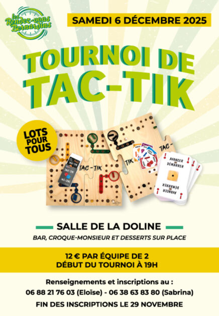 Les Rendez-vous Bernardins organisent un tournoi de Tac-Tik le samedi 6 décembre à 19h à la salle de la Doline